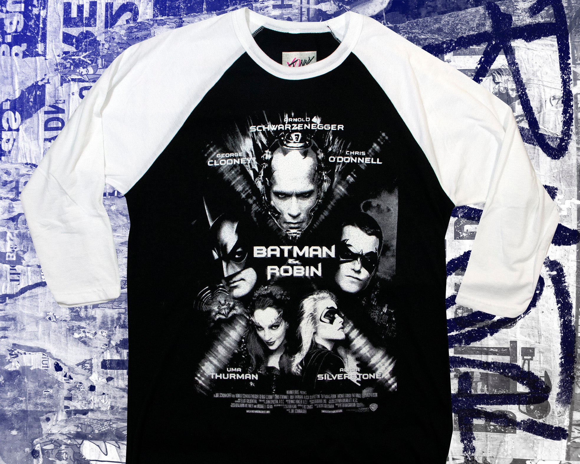 Inspired by the iconic Batman & Robin (1997) movie poster, this screen-printed tee features the full cast — Batman, Robin, Mr. Freeze, Poison Ivy, and Batgirl — celebrating peak ’90s camp, comic-book chaos, and cult-classic nostalgia, making it a must-have for true Batman fans and lovers of iconic pop culture moments.